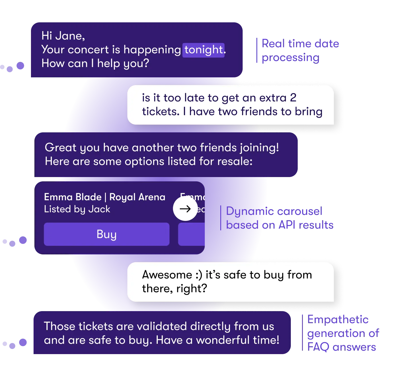 That's why we build AI agents with generative and visual abilities. This means that the AI agent will actually perform as a human agent—using and understanding natural language and all it's nuances, and being able to view and understand images.